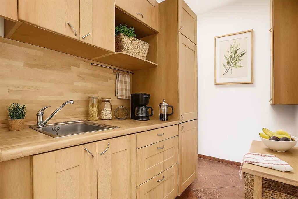 - kuchyňské linky se spotřebiči: lednice s mrazákem, indukční varná deska, horkovzdušná trouba, digestoř, myčka,