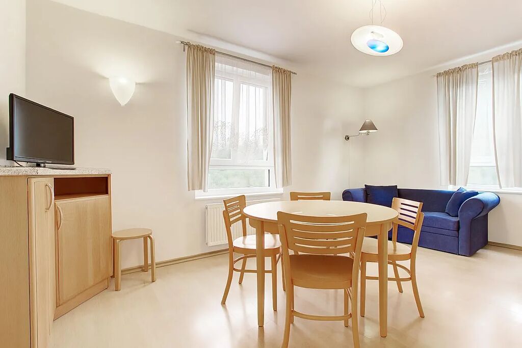 Každá bytová část je oddělená prosklenými dveřmi, což umožňuje využití bytu jako dvougeneračního nebo k pronajímání (např. krátkodobé ubytování v lázeňském městě, ale i dlouhodobé).