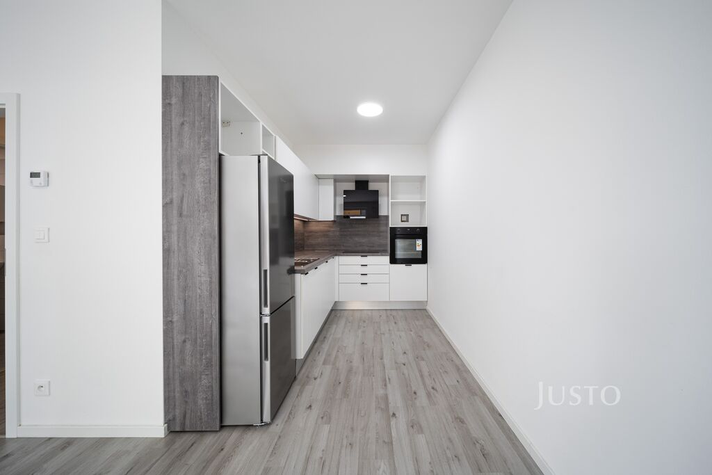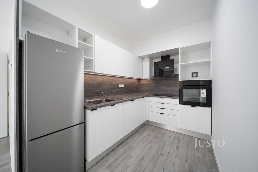 • krásná vybavená kuchyňská linka z TOP materiálů, značkové spotřebiče (myčka, indukční varná deska, horkovzdušná trouba, nerezová lednice) a vestavěná skříň na míru propojená s předsíňovou stěnou