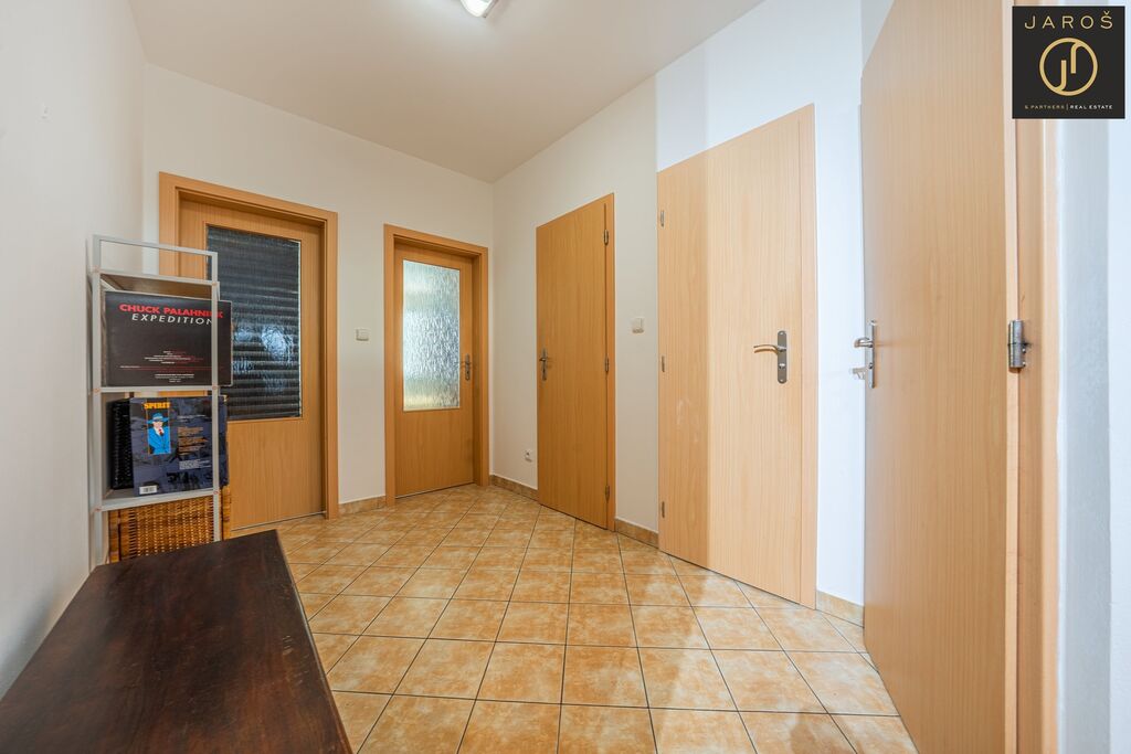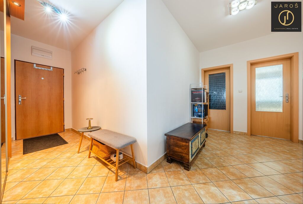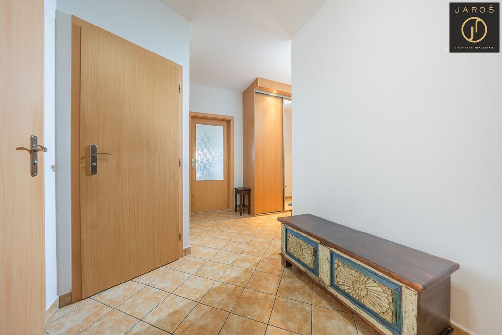 Po vstupu vás přivítá velmi příjemná vstupní chodba s dostatkem úložného prostoru. Odtud se dostanete do světlé kuchyně propojené s jídelním koutem a obývacím pokojem, ze kterého je vstup na slunnou terasu s nádherným výhledem. V bytě se nachází také prostorná koupelna s vanou, samostatná komora a v klidné části bytu dva velké, neprůchozí pokoje ideální pro ložnici a dětský pokoj či pracovnu.