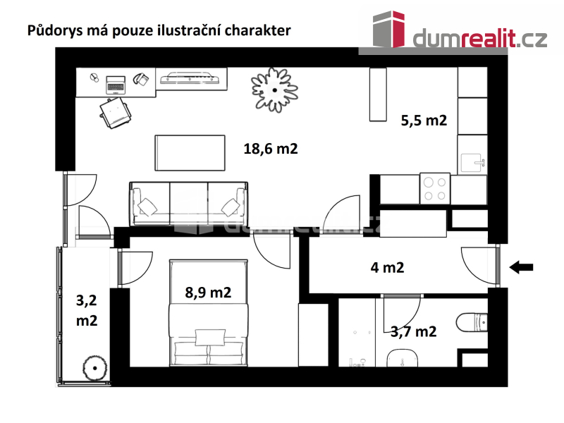 Jedná se o jižně orientovaný byt, částečně vybavený, viz foto, sestávající z předsíně, koupelny s vanou, umyvadlem a WC, obývacího pokoje s kuchyňským koutem, ložnice a terasy. Součástí nabídky je taktéž sklepní kóje a možnost využívání kolárny.