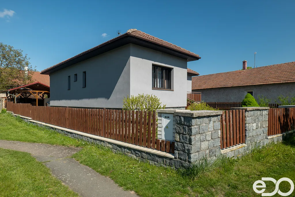 Dispozičně se jedná o dům 3+1 s užitnou plochou cca 76 m². Vstupní veranda vede do centrální chodby, ze které se dostanete do všech místností: kuchyně, obývacího pokoje, dvou ložnic a koupelny s WC. V suterénu je garáž, technické zázemí a úložné prostory. Na zahradě se nachází krytá pergola ideální pro letní posezení.