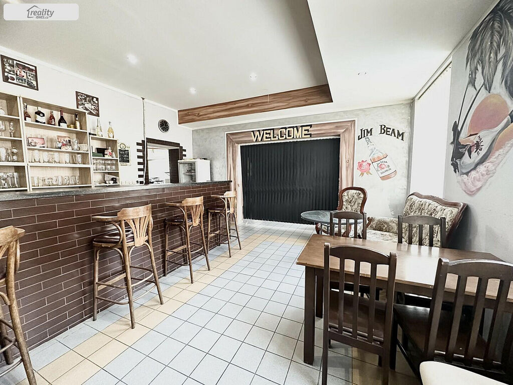 Dispoziční řešení: v 1. NP vstupní chodba, 1 část restaurace cca 10 míst a bar, 2 část restaurace cca 36 míst, salonek cca 12 míst, pánské toalety, dámské toalety, zadní vstup do prostor pro zaměstnance, ( zázemí ) dle stanov hygieny, kde je sprcha, umyvadlo a toalety pro personál, z těchto prostor určených pro personál je vstup do kuchyně, která má potřebné náležitosti schválené dle stanov Hygieny Teplice. Dále v zadní části objektu je kuchyňka sloužící pro ubytované, vchod na zadní dvůr a schodiště do sklepa a rovněž , v jiné části chodby schodiště do 2 NP a zázemí pro uklízečku, kde je také umístěna pračka.