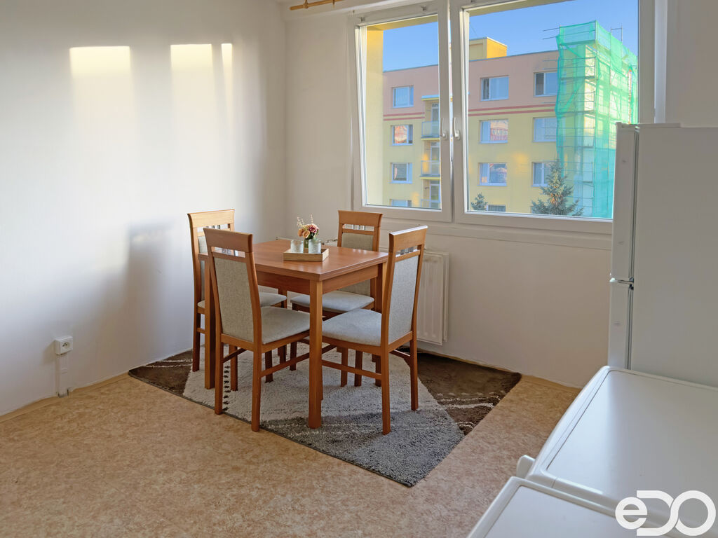 Realitní kancelář eDO Reality Vám exkluzivně nabízí prodej bytu 1+1 o výměře 35,7 m2 + sklep 2 m2. Byt má skvělou dispozici, velkou kuchyni (lze užívat i jako obývací pokoj s kuchyňským koutem) a druhý prostorný pokoj. K bytu se využívá lodžie v mezipatře. Byt je udržovaný, vhodný k nastěhování. Původní umakartové jádro bylo upraveno obkladem.