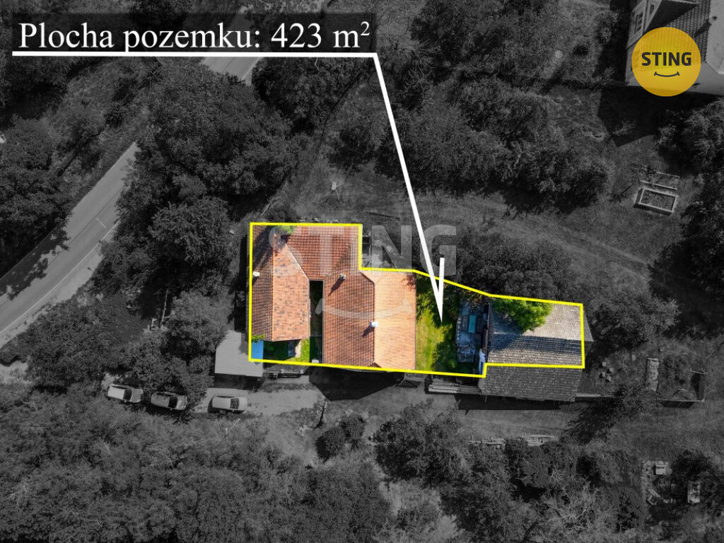 Rodinný dům sousedí se stavebním pozemkem o rozloze 1.340 m² a navazující loukou o výměře 6.259 m². Vše je ve vlastnictví jednoho majitele a dohromady tvoří funkční celek s výměrou 8.022 m².