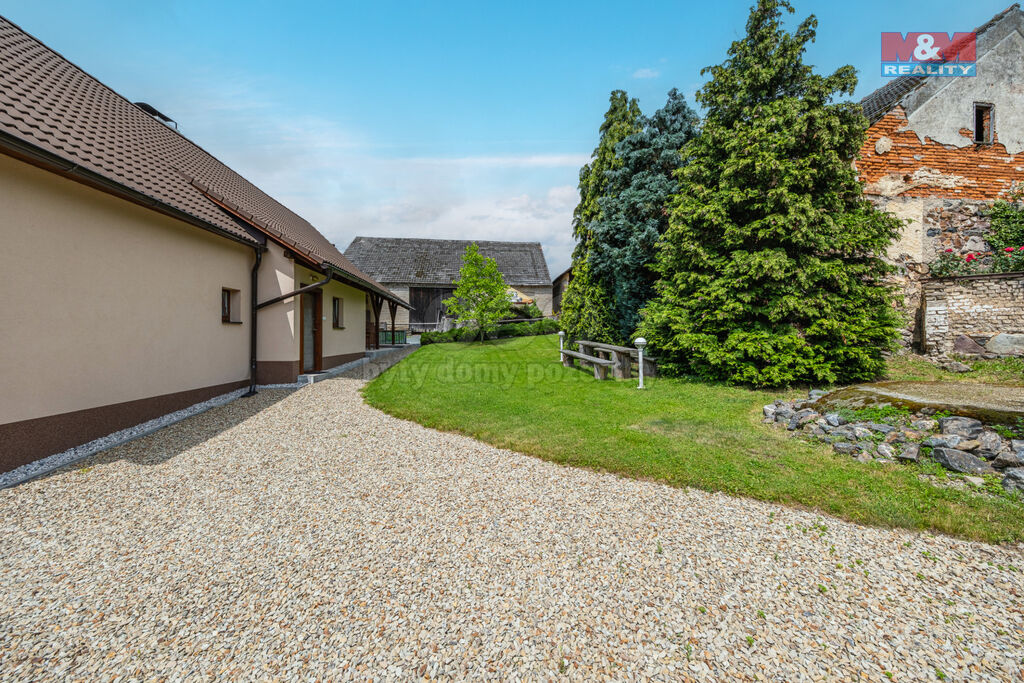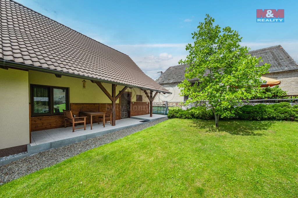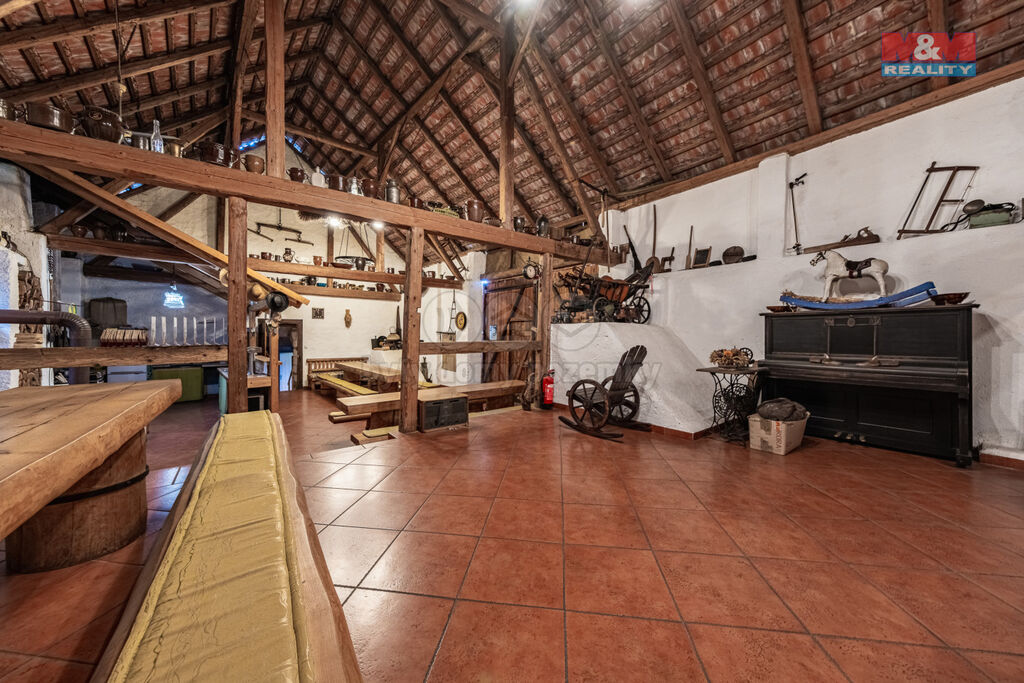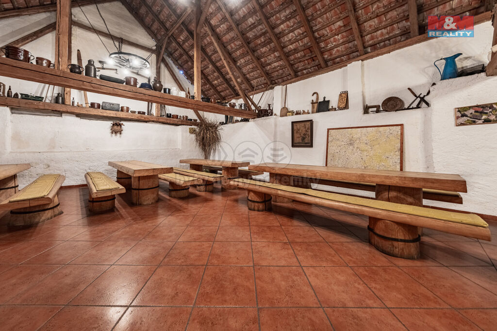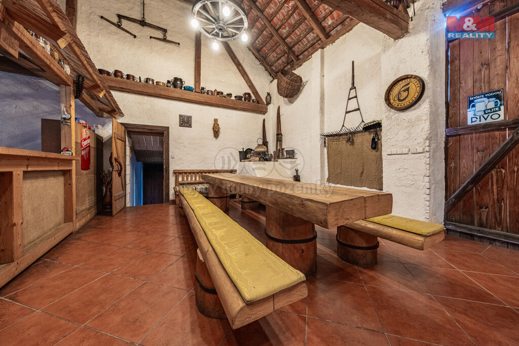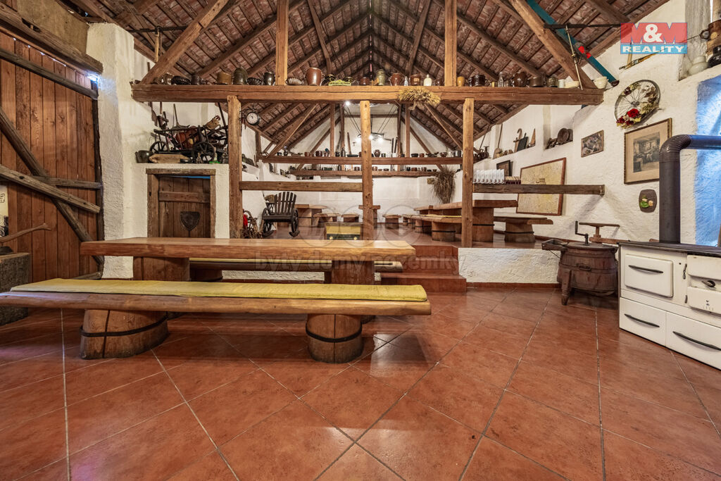 Na pozemku o rozloze 2285 m² se nachází také hospoda, garáž, dva sklepy, stodola a zahrada s ovocnými stromy. Dům má užitnou plochu 295 m² a kapacitu pro 16 osob ve čtyřech útulných pokojích s koupelnami. Stav nemovitosti je velmi dobrý a udržovaný. V půdním prostoru je možné zařídit další pokoje.