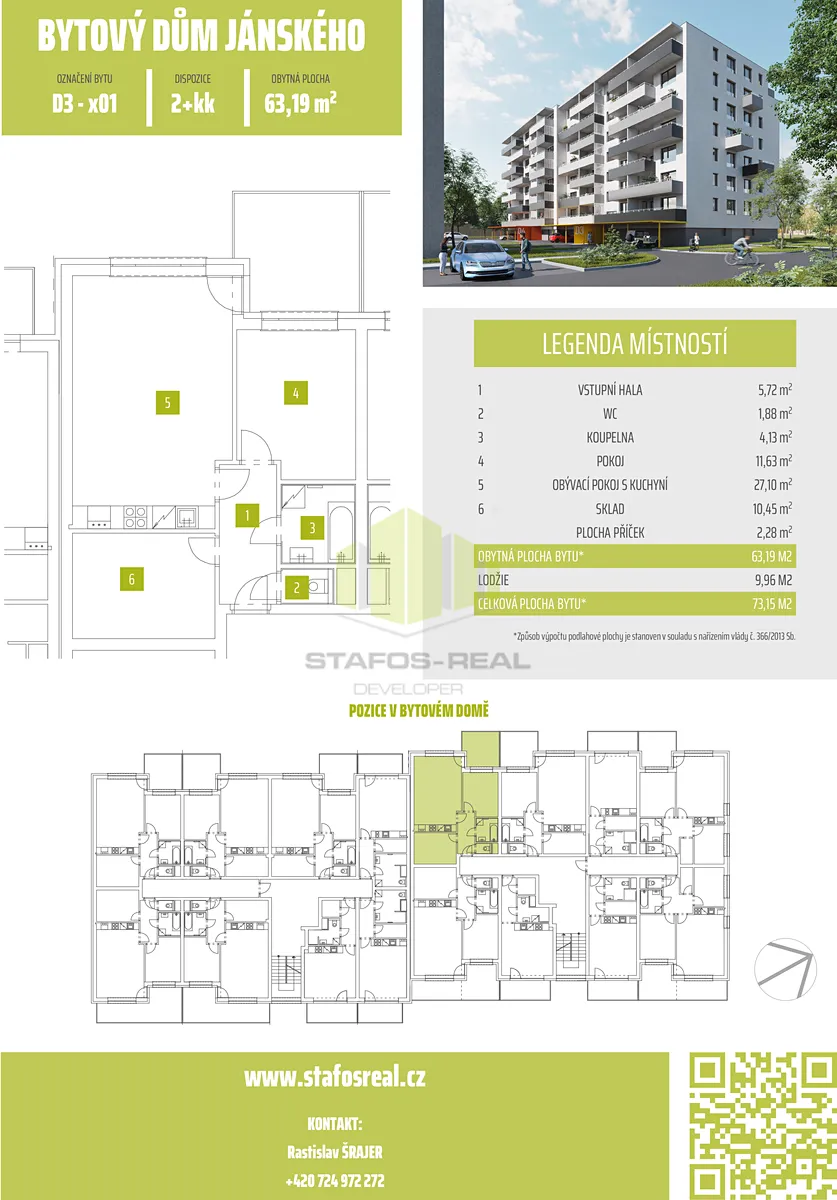 Začněte Vaší novou životní kapitolu bydlení a vychutnejte si radost z bydlení v zbrusu novém bytě. Prověřujeme evidenci exekucí, insolvencí a dluhů na zdravotním pojištění našich potenciálních nájemníků. Pro lepší představu o tomto bydlení vám doporučujeme shlédnout virtuální prohlídku, která vám také poskytne možnost změřit jakýkoliv rozměr tohoto bytu. Volné od listopadu/prosince 2025. Kompletní výběr bytů v tomto domě najdete v kartě projektu a na našich stránkách.