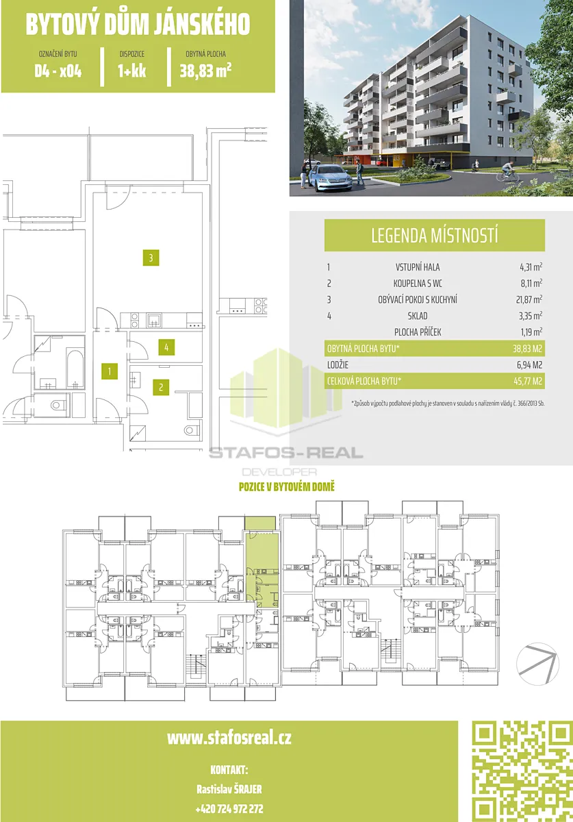 Začněte Vaší novou životní kapitolu bydlení a vychutnejte si radost z bydlení v zbrusu novém bytě. Prověřujeme evidenci exekucí, insolvencí a dluhů na zdravotním pojištění našich potenciálních nájemníků. Pro lepší představu o tomto bydlení vám doporučujeme shlédnout virtuální prohlídku, která vám také poskytne možnost změřit jakýkoliv rozměr tohoto bytu. Volné od listopadu/prosince 2025. Kompletní výběr bytů v tomto domě najdete v kartě projektu a na našich stránkách.
