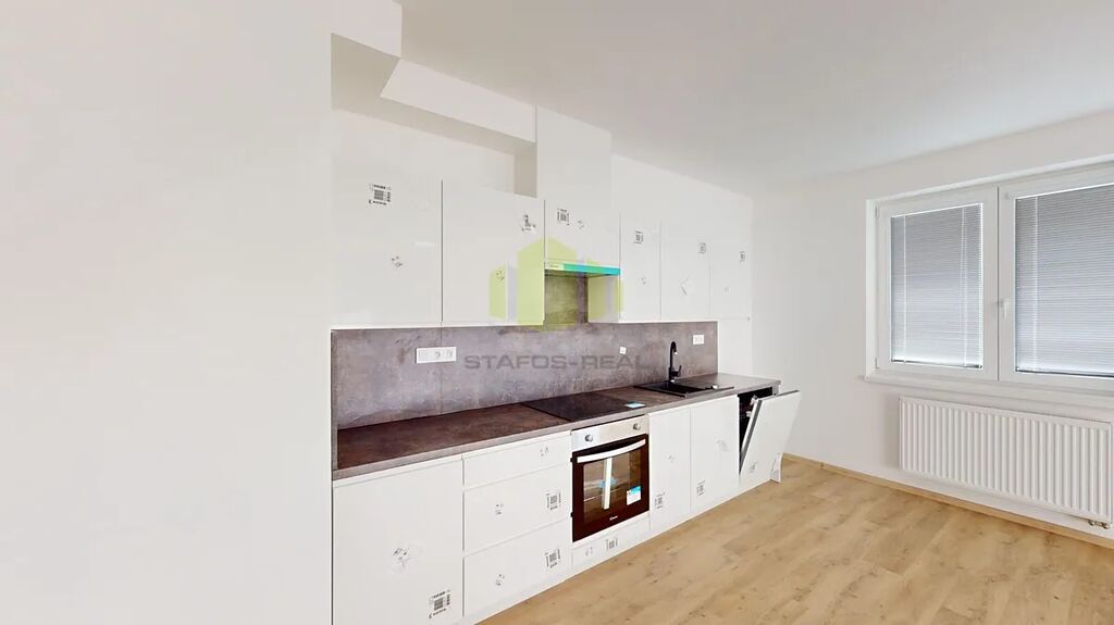 Nabízíme Vám byt 3+kk o ploše 92m2, který je korunován prostornou terasou o rozloze 24m2. Prostor je promyšleně rozdělen na obývací pokoj s moderně vybaveným kuchyňským koutem, přímosousedící ložnici, přičemž z obou místností je vstup na terasu, dále druhou samostatnou ložnici orientovanou na severní stranu s výhledem na město, vstupní halu, šatnu, koupelnu a samostatné WC. Vybavení kuchyňské linky zahrnuje indukční desku, troubu, myčku na nádobí a lednici s mrazákem. V koupelně naleznete vanu, umyvadlo, otopný žebřík a přípravu pro pračku.