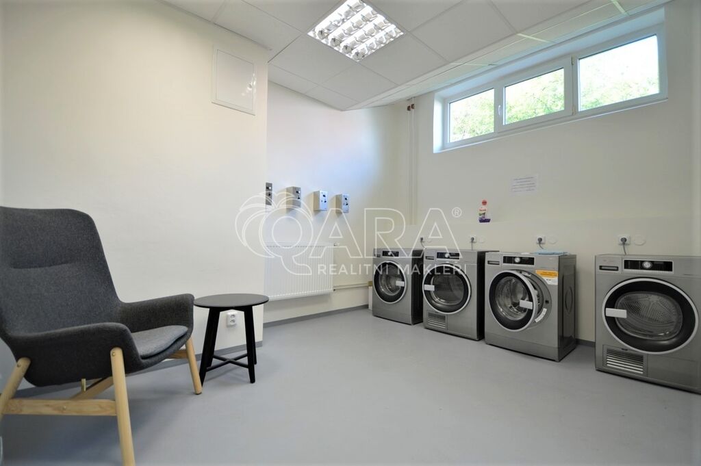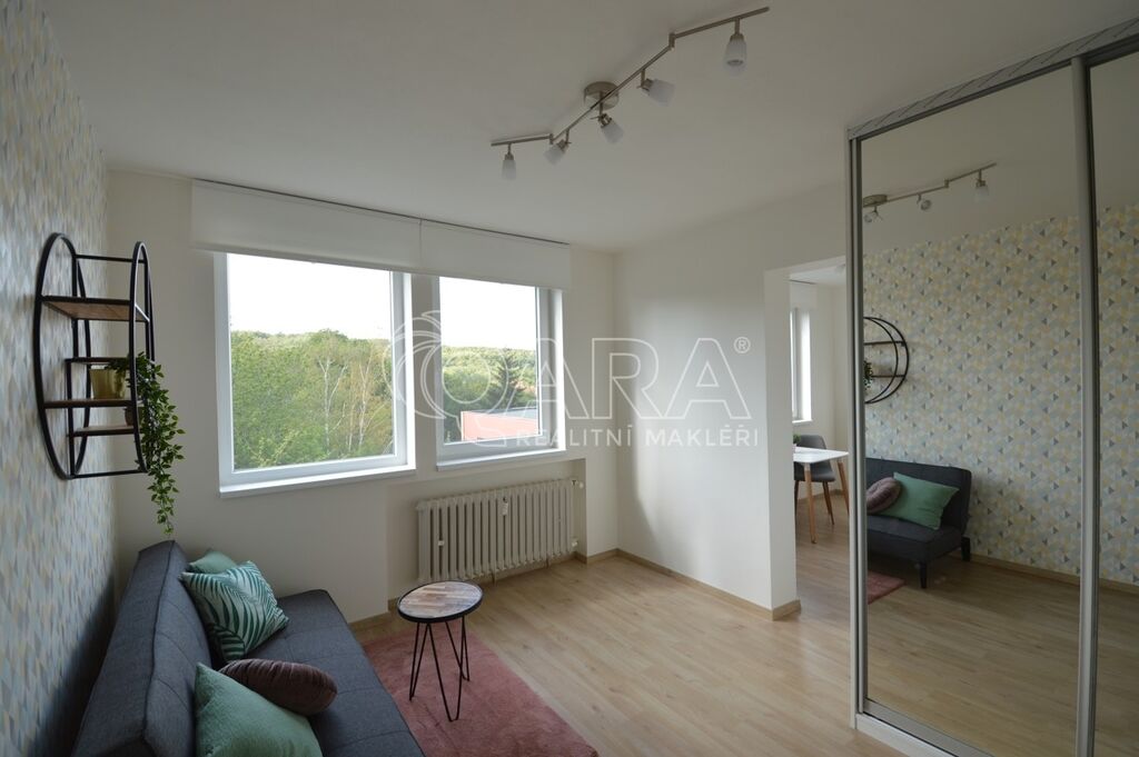 Světlé a příjemné 1+1 se sklepem a s celkovou výměrou 31,8 m2, se nachází v pátém patře domu s výtahem v unikátním projektu V bloku, ulice Peroutkova, Praha 5, Jinonice. Nabízí samostatný pokoj s vestavěnou skříní a rozkládací pohovkou, průchozí pokoj s kuchyňským koutem, jídelním stolem a židlemi, předsíň s úložnými prostory, koupelnu s vanou a toaletou. Orientace na západ s otevřeným výhledem do zeleně. Vestavěná kuchyňská linka na míru, zařízená kvalitními spotřebiči, indukční deska, odsávací digestoř, lednice s mrazákem, myčka a mikrovlnka. K dispozici je sklep 1,2 m2.
