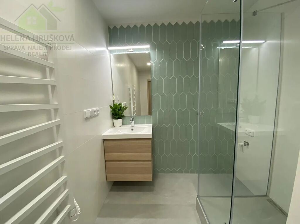 Vinylové podlahy, dlažba, obklady, interiérové dveře s kvalitním kováním, obložkové zárubně. Příjemné bydlení s výhledem do zeleně, škola,školka, obchody, MHD 2 minuty.
