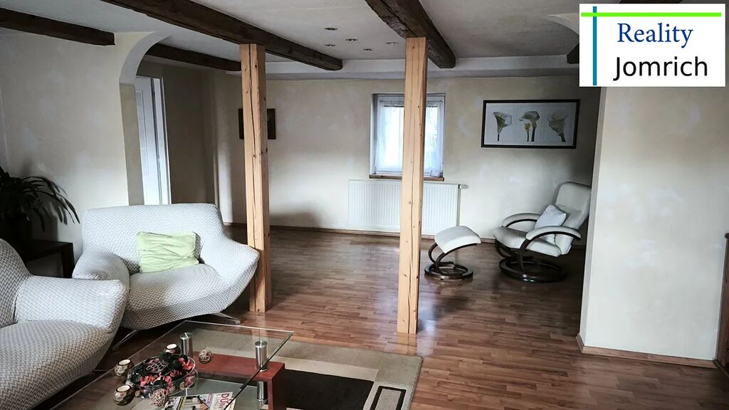Rodinný dům má zastavěnou plochu cca 110 m2 + dílna s garáží cca 29 m2 + terasa cca 16 m2, jeho modernizace byla realizována v roce 2020 nákladem zhruba 700.000 Kč. V přízemí se nachází obývací pokoj s terasou, kuchyň s jídelnou, koupelna s WC, v podkroví jsou 2 velké pokoje a nad nimi je půda. Dům má zateplenou fasádu a je odkanalizován do vyvážecí jímky s přepadem, připojen na vodovodní řád, rozvod elektřiny a jeho vytápění zajišťuje ústřední kotel na tuhá paliva v kombinaci s elektrokotlem. RD je částečně podsklepen a ihned k nastěhování. Průměrné měsíční náklady spojené s užíváním domu jsou ve výši 6.000 Kč.