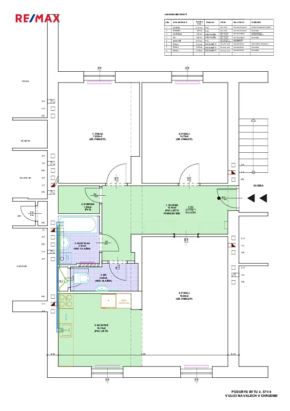 Pronájem krásného, v nedávné době zrekonstruovaného bytu 3+1, 78 m2 užitné plochy + 6 m2 sklepní kóje v Chrudimi. ul. Na Valech, č.p. 571.