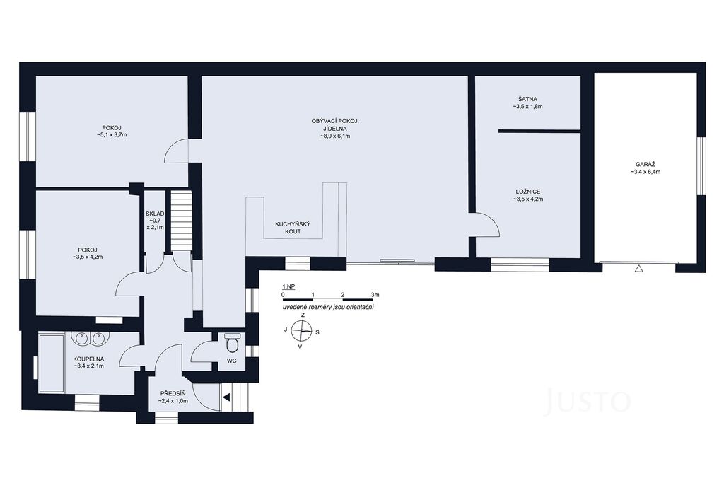 • užitná plocha samotného domu 129,3 m² (pouze 1.NP = přízemí)