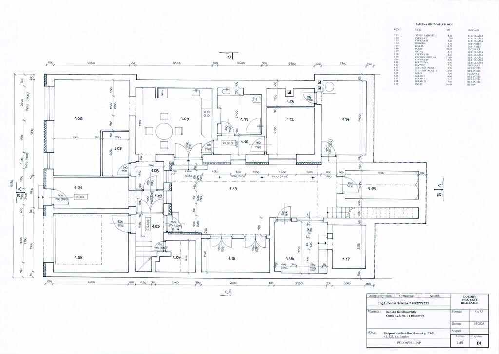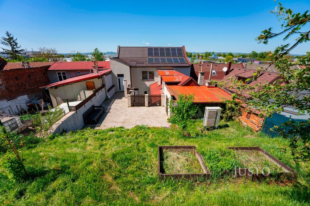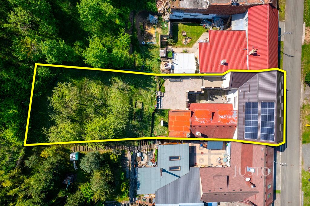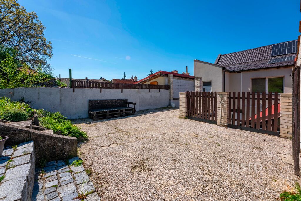 • Celková výměra pozemku je 613 m², z toho zahrada má výměru 351 m². Z 1. NP se vchází na dvorek, odkud jsou vstupy do skladových prostor a technických místností o celkové výměře 45,40 m².