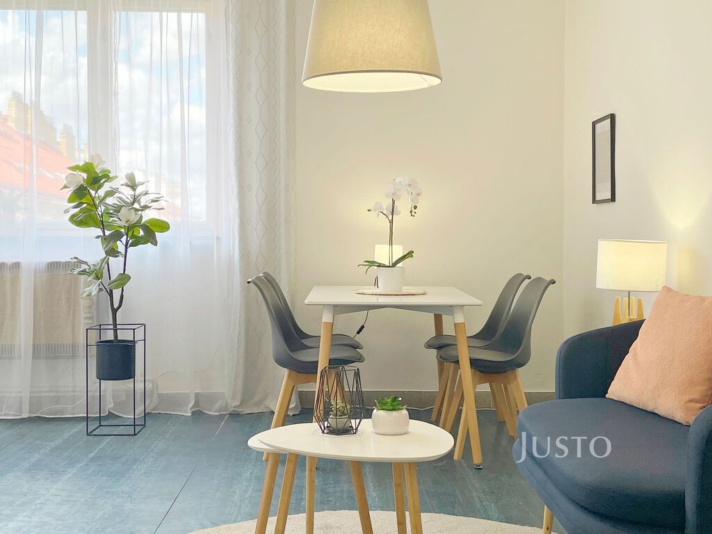 - Dispozice 3+1 s velmi praktickým půdorysem a možností propojení kuchyně s pokojem