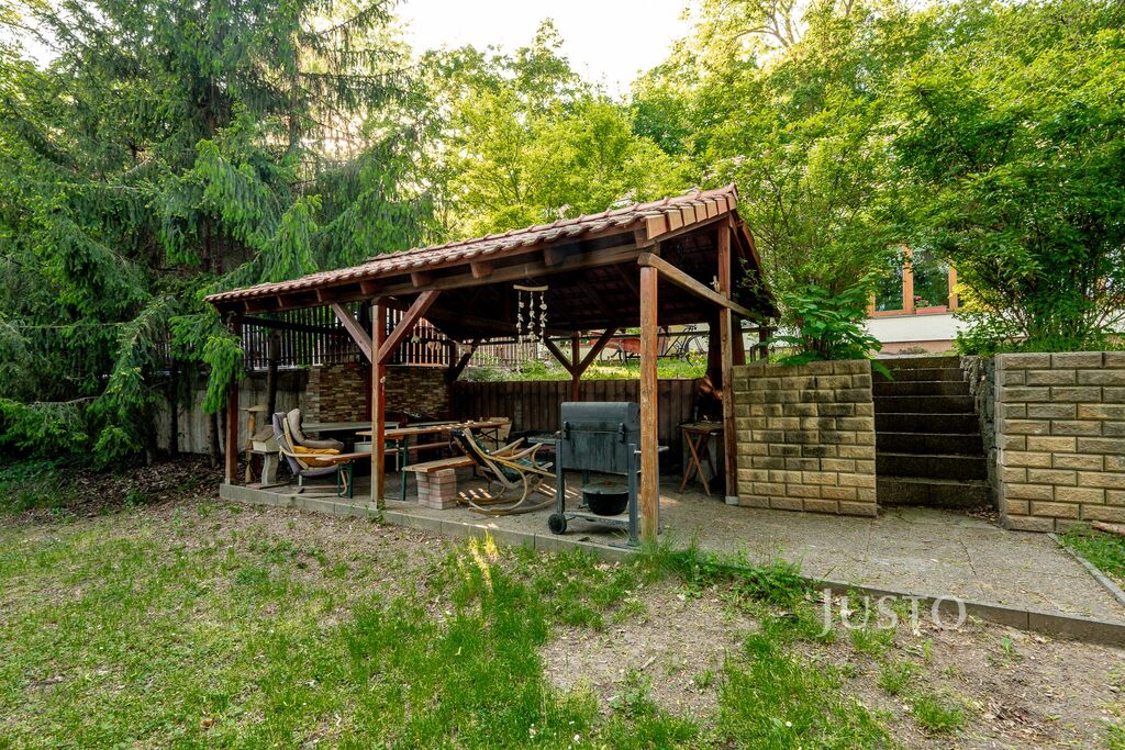 - Mimořádný dojem z nemovitosti podtrhuje prostorný zahradní altán s možností grilování.