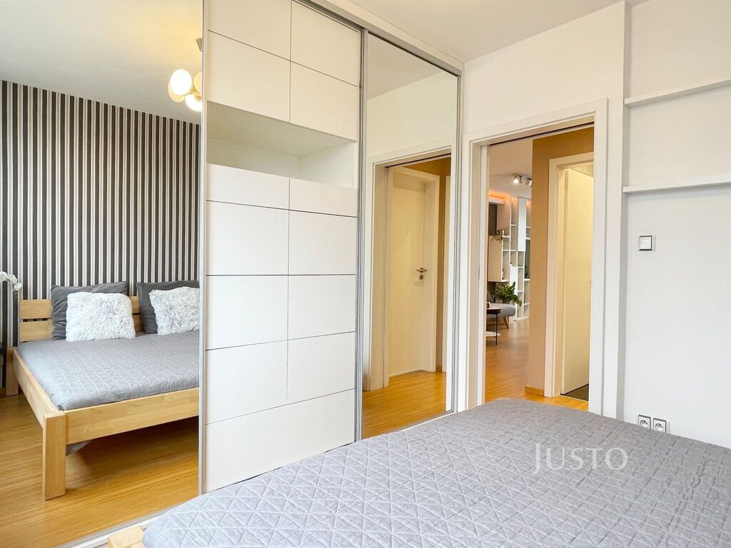 Ložnice je orientována na východ s výhledem též do klidného vnitrobloku. Velká vestavěná skříň přes celou délku stěny zajišťuje dostatečný úložný prostor.