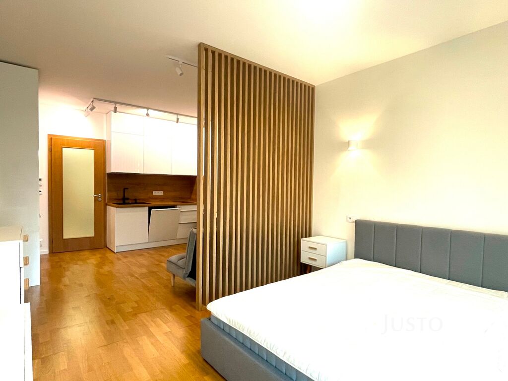 - ložnice a kuchyňský kout jsou opticky odděleny designovou příčkou