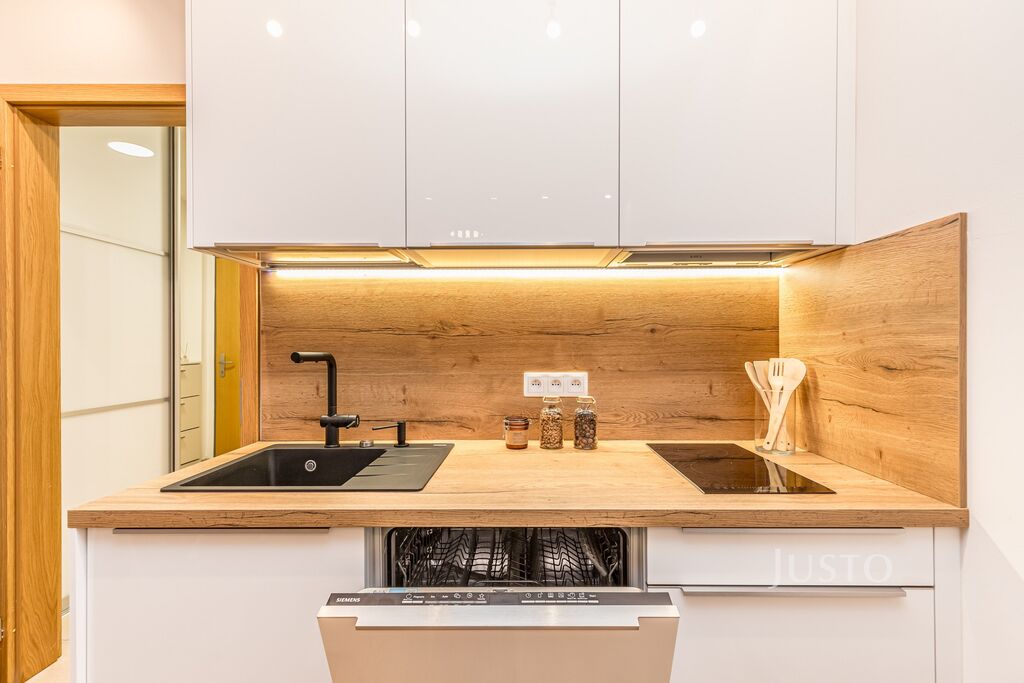 - byt je kompletně vybaven vč. kuchyňské linka se značkovými spotřebiči