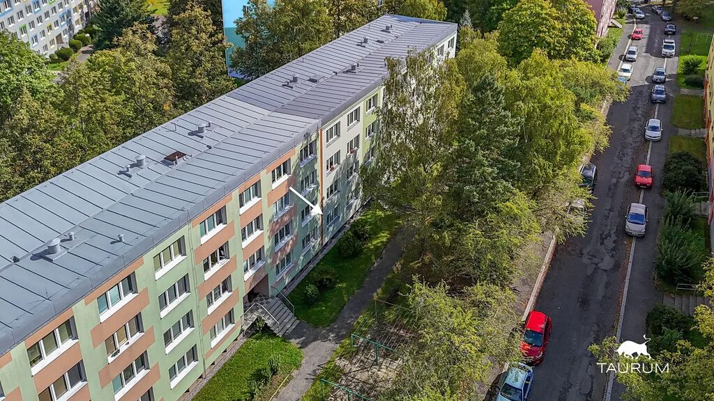 Byt se nachází ve zvýšeném přízemí, v revitalizovaném panelovém domě a je ve velmi dobrém stavu. Nabízí tři pokoje s kuchyní, kde je nový sporák, digestoř s odtahem a vodovodní baterie, koupelnové zděné jádro s vanou, WC a umyvadlem a také celkem prostornou předsíň s původními vestavěnými skříněmi.