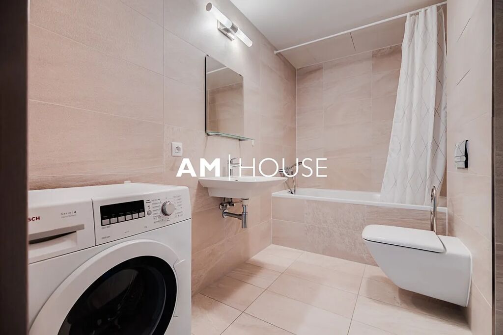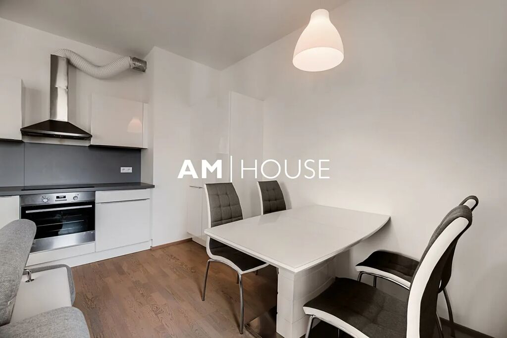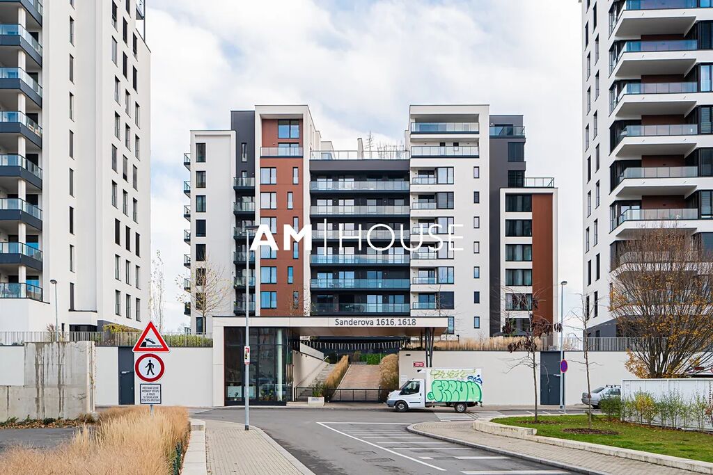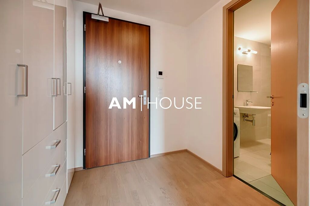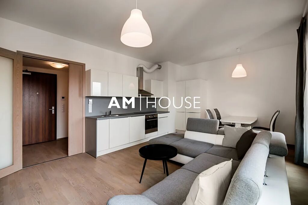 Kompletně zařízený a stylový byt se nachází v 7. nadzemním podlaží v novostavbě. Interiér bytu tvoří obývací pokoj se vstupem na balkon, ložnici a koupelnu. Ložnice má postel a velkou skříň.