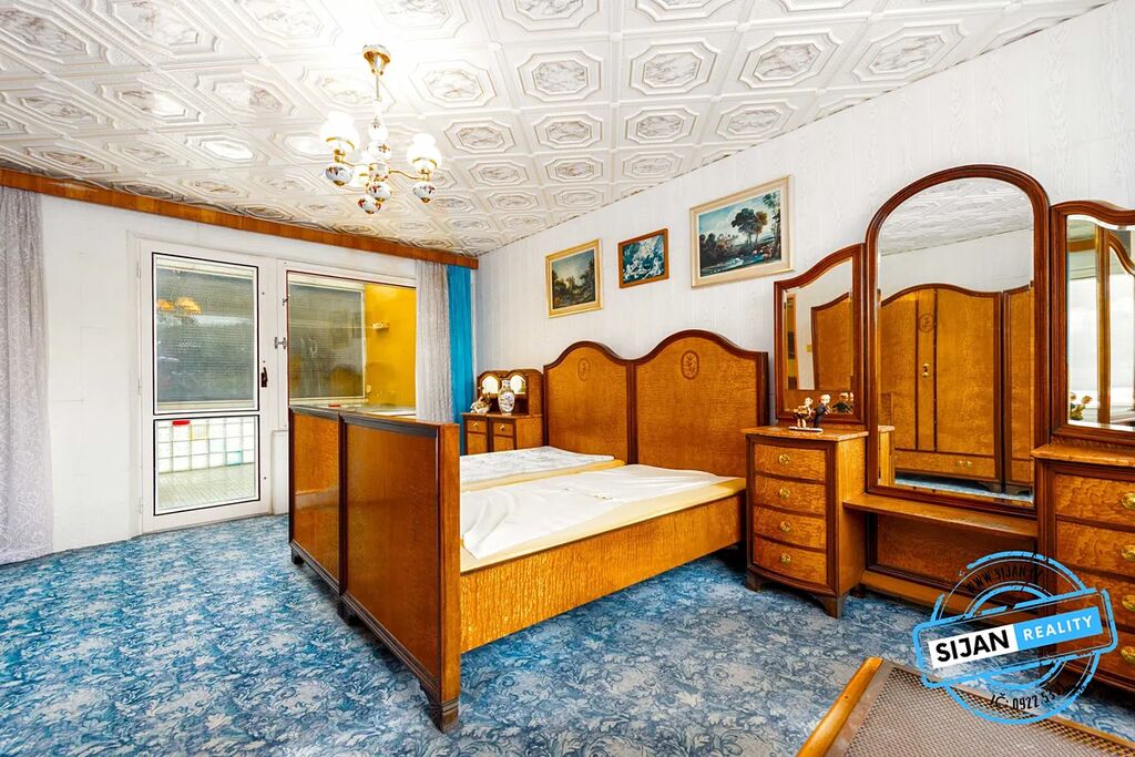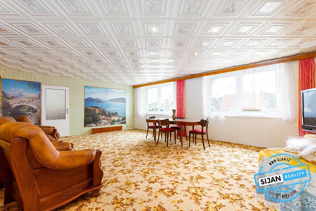 Dům nabízí dispozici 4+1 a užitnou plochu přes 230m². V přízemí najdete vstupní halu, kuchyni, dva pokoje, koupelnu, WC, technické zázemí i garáž a dílnu. V patře je prostorný pokoj, ložnice, spíž a terasa s výhledem do zahrady. Součástí je i částečné podsklepení.