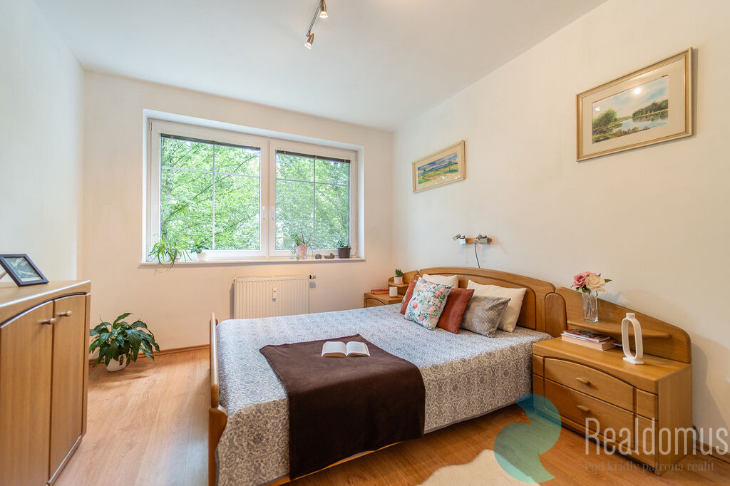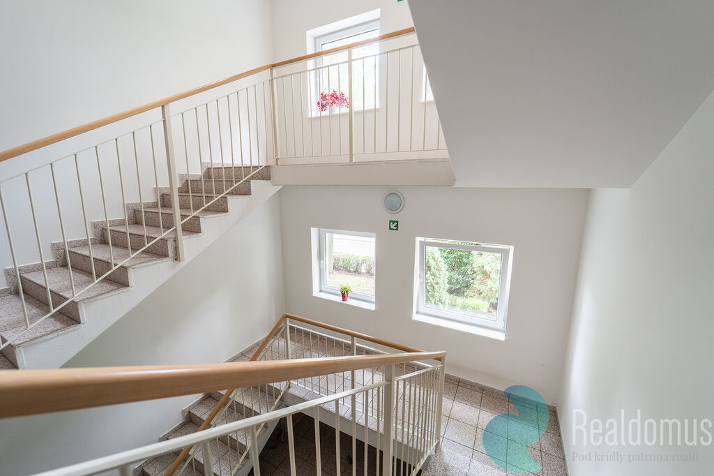 K bytu náleží lodžie o velikosti 3,5 m² s výhledem do zeleně a dále zděný sklep o velikosti 3 m².