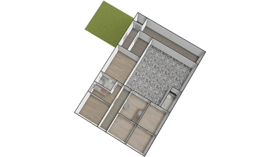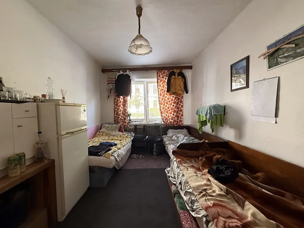 Vchodovými dveřmi vejdeme do místnosti, která slouží jako vstupní místnost i kuchyně a její celková plocha činí cca 7,44 m2. Z této je vstup do prvního pokoje o výměře cca 14,57 m2. Chodbou o výměře cca 2,04 m2 z kuchyně projdeme do další obytné místnosti o výměře cca 17,16 m2. V bytě je také koupelna spolu s WC, umyvadlem a sprchovým koutem o výměře cca 2,82 m2.