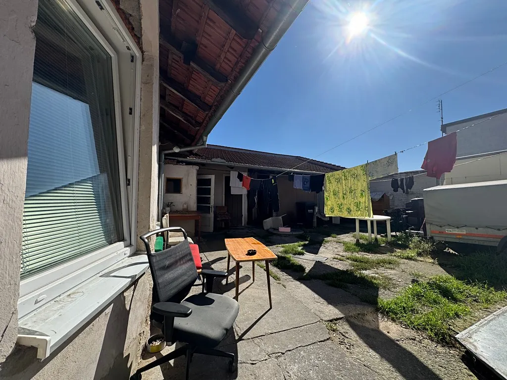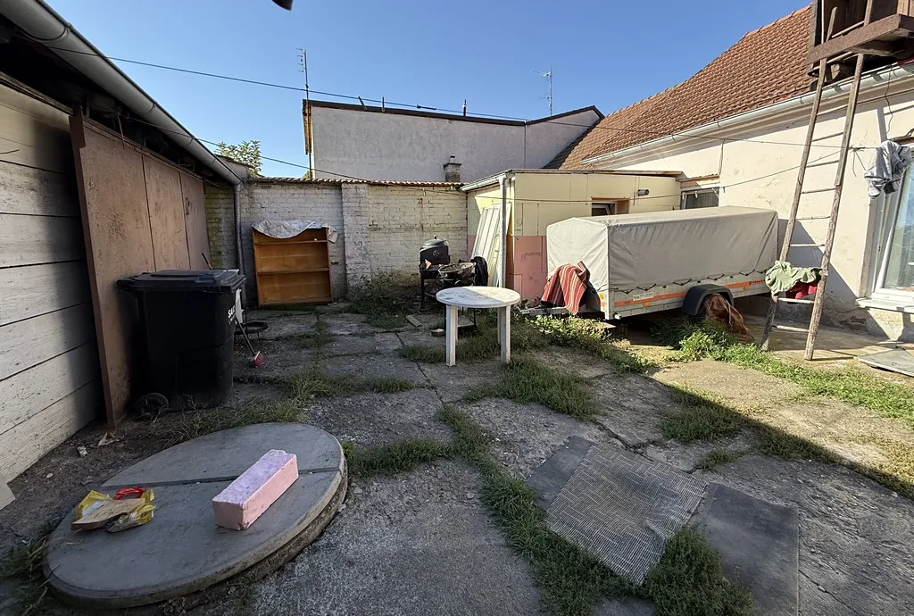 Vraty vejdeme do budovy, kde je průjezd až na pozemek. Samotný vjezd má celkovou plochu cca 21,76 m2. Z vjezdu je vstup do dvou samostatných bytových jednotek, každá se nachází na jiné straně budovy. Dále pokračujeme do dvoru, kde se nachází nespočet zastřešených prostor včetně garáže, kůlny a spousty dalších místností. Projdeme jednou z částí těchto prostor a ocitneme se na příjemné zahrádce, která svým obyvatelům může poskytnout prostor pro pěstování zeleniny, ale i klid a relaxaci, kterou si každý nás zaslouží. Celková plocha zahrady je 96 m2, z toho délka je cca 15 metrů a šířka 6,4 metrů. Na dvoře se nachází sklep s klenutým stropem, který přímo vybízí k vybudování vinného sklípku.