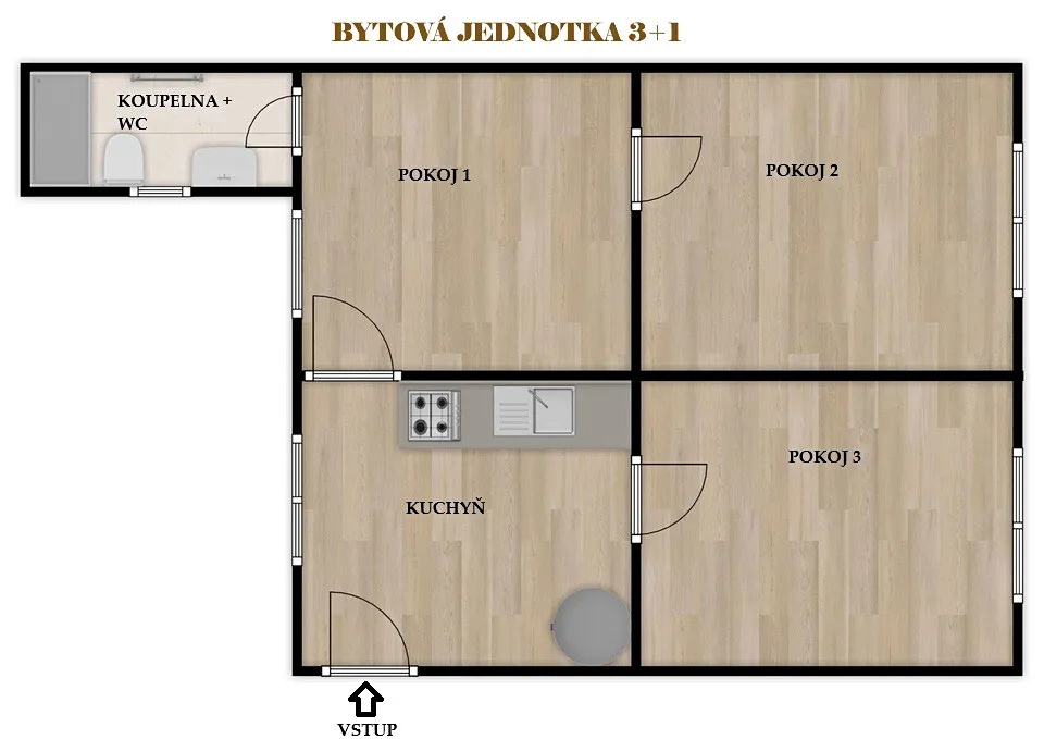 Bytová jednotka 3+1 a její dispozice: