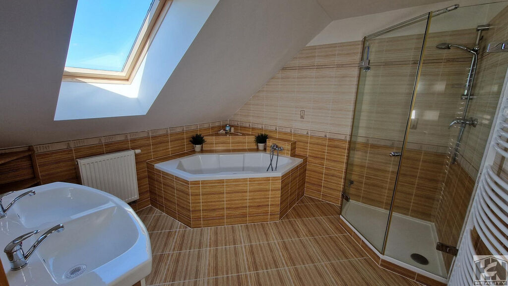 V 2. NP se nacházejí 4 pokoje, prostorná chodba koupelna s vanou a sprchovým koutem, samostatné WC. Z chodby je vstup po výsuvném schodišti na půdu.