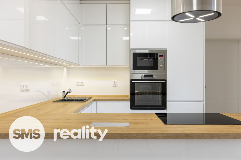 Byt vyniká elegantním a nadčasovým designem s důrazem na kvalitní materiály a precizní zpracování. Obývací pokoj je propojen s kuchyňským koutem, kde se nachází plně vybavená kuchyňská linka na míru – včetně vestavných spotřebičů, která uspokojí i náročnější uživatele. Interiér působí vzdušně, moderně a příjemně.