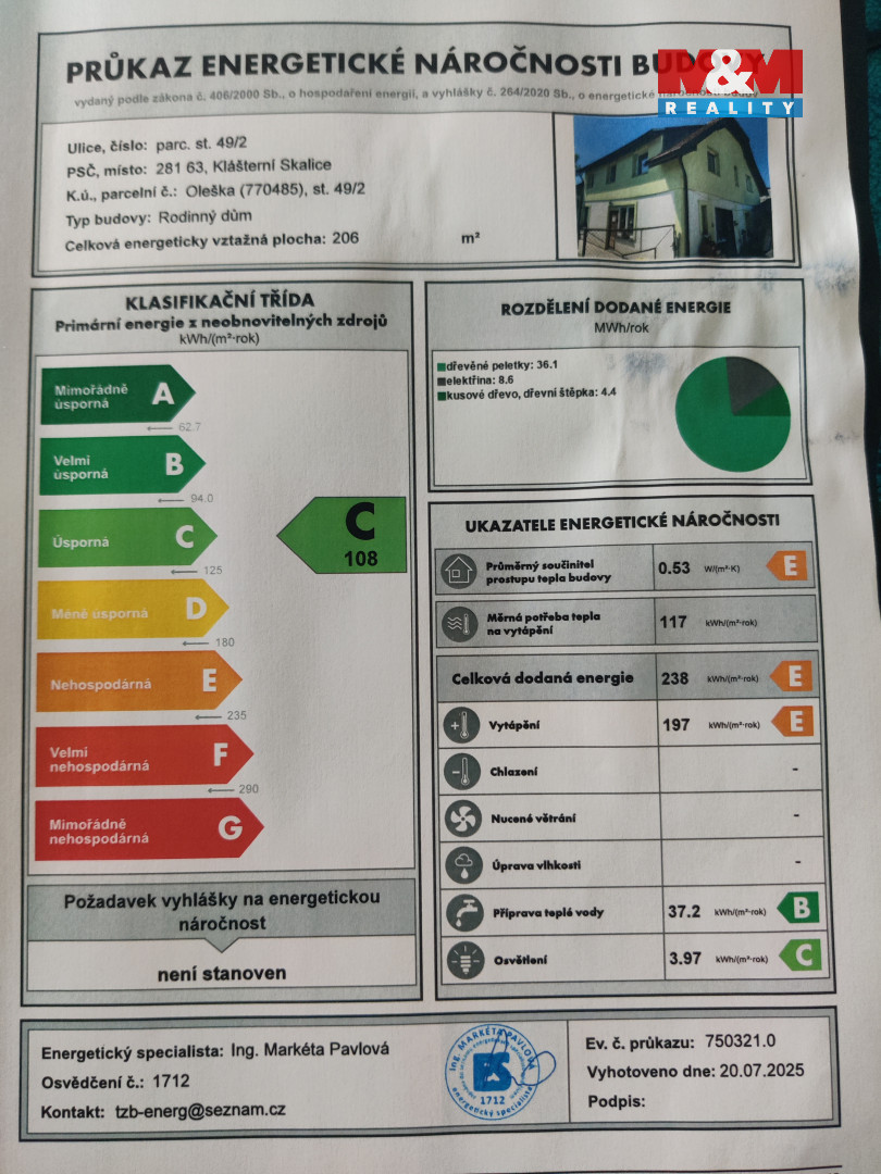 Hledáte bydlení, které nabídne místo dvěma generacím pod jednou střechou? V klidné části obce Klášterní Skalice na vás čeká nemovitost s užitnou plochou 135 m² která stojí na pozemku o velikosti 510 m² a je rozdělena do tří nadzemních podlaží. V přízemí se nachází bytová jednotka 2+kk, v prvním patře prostorný byt 5+kk s mezonetovým patrem. Celkem dům nabízí osm místností a balkón s krásným výhledem do okolní přírody. Vytápění zajišťuje automatický kotel na pelety Verner 25 kW. Obvodová konstrukce je tvořena keramickým a pórobetonovým zdivem a dům je částečně zateplen pěnovým polystyrénem o tloušťce 100 mm. Energetická náročnost je hodnocena třídou C, což zaručuje úsporný provoz. Díky své dispozici je ideální jak pro vícečlennou rodinu, tak i pro kombinaci bydlení a podnikání. Lokalita nabízí klidné prostředí a zároveň pohodlnou dostupnost do Kolína, Českého Brodu či Kostelce nad Černými lesy.