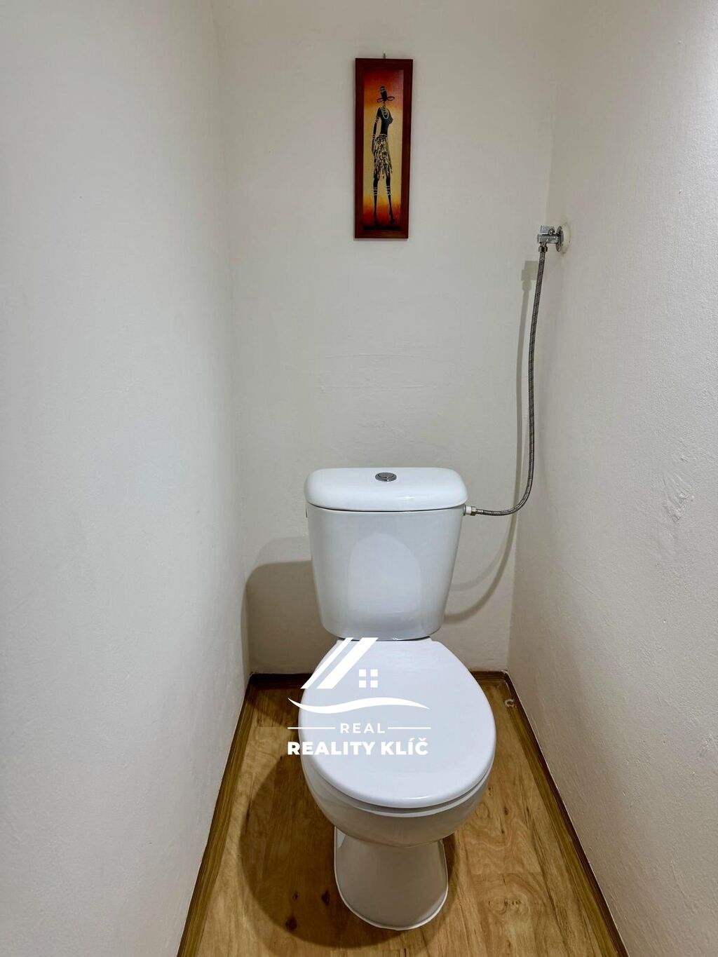 Byt je vybaven kompletně zařízenou koupelnou a WC, dále obsahuje sporák a kuchyňskou linku.