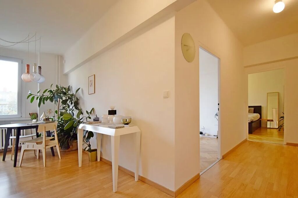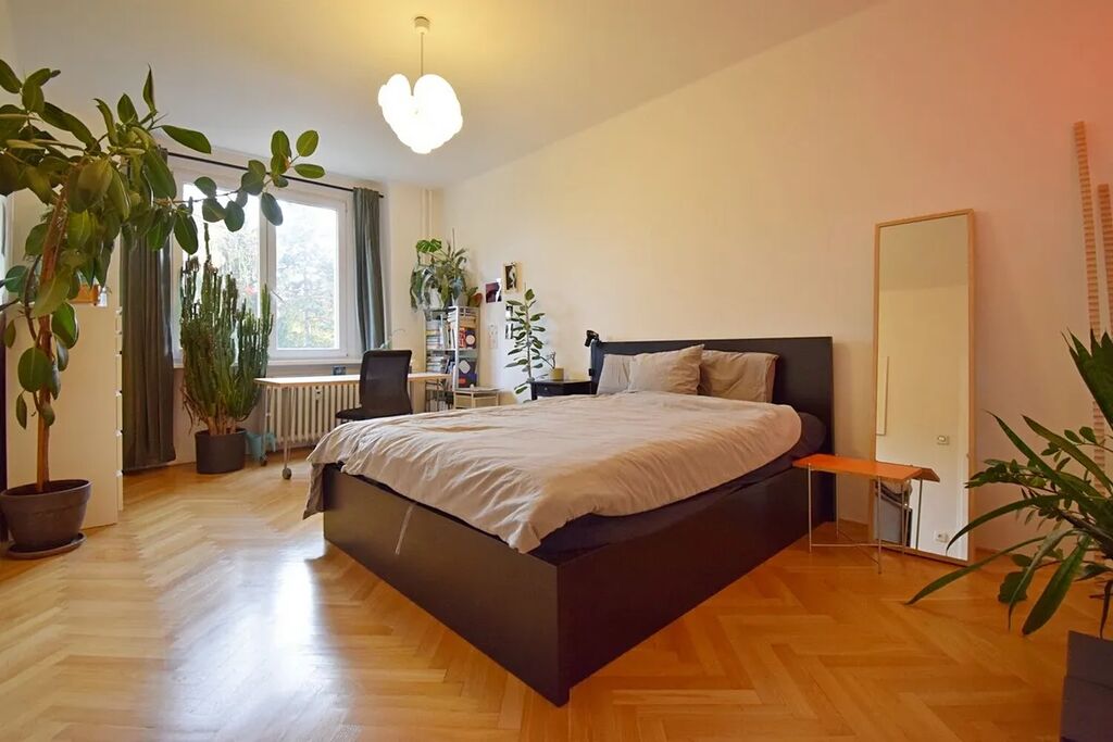Velmi hezký, částečně zařízený byt po zdařilé rekonstrukci ve 3.patře cihlového domu bez výtahu v malebné části Vršovic. Z centrální chodby jsou samostatné vstupy do všech místností, které jsou situovány na jih do klidného parku před domem. V bytě zůstane pračka, velké skříně v předsíni, komoda a manželská postel s úložným prostorem v ložnici, rozkládací pohovka a dýhovaný stůl v kuchyni. Obývací pokoj i ložnice mají francouzské okno umožňující příjemný výhled do zeleně a zároveň propouštějí do místností mnohem více světla. V kuchyni je nová linka s masivní dřevěnou deskou z exotického dřeva Hevea a zánovní kvalitní spotřebiče (myčka, lednice, trouba, plynový sporák. Skvělá dopravní dostupnost. K nastěhování od 1.11.2025.