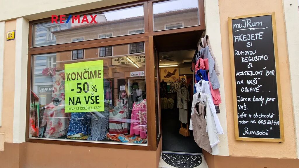 Nabízíme k pronájmu obchodní prostory v centru města Písek na pěší zóně v Nerudově ulici č. 163 o výměře 76 m2. 76.15 m2. K dispozici je samostatné uzamykatelné zázemí (sklad, kancelář), vlastní WC, zkušební kabinky, prostorná výloha do pěší zóny, elektrické přímotopy. Prostory sloužily dlouhodobě jako prodejna textilu, je možné ale jejich účel změnit.
