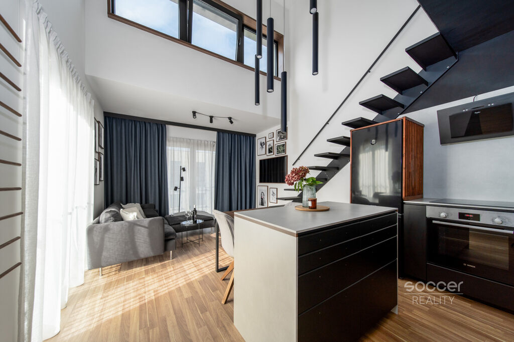 Soccer Reality vám zprostředkuje ke koupi moderní loftový byt 1+kk o ploše 36,1 m² s galerií 18,2 m² a balkonem 7,8 m², který se nachází v 5. NP rezidenčního projektu Bydlení na Krejcárku v Praze 9 – Libeň, ul. Novovysočanská.