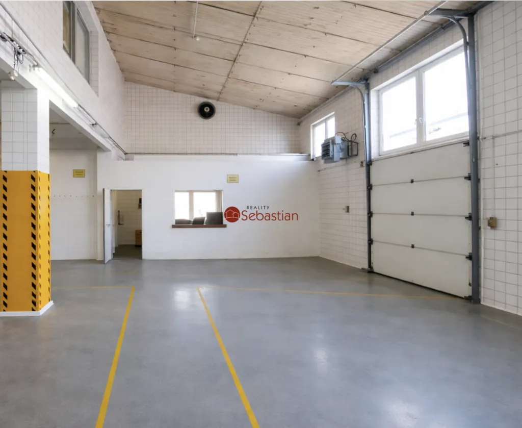 Celý objekt je dispozičně řešen jako větší otevřená hala s přilehlými zázemími a kancelářskou částí. Součástí je nakládací rampa, manipulační plochy a pohodlný přístup pro osobní i nákladní dopravu.