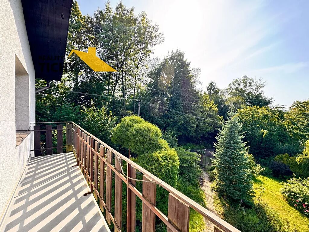 patro – hlavními dveřmi vstoupíte přímo do patra domu – předsíň, koupelna s vanou a WC, ložnice s francouzským oknem a velký obývací pokoj s krbovými kamny, který je propojený s kuchyní - výstup na velký balkon přes celou šíři domu – nádherný výhled do zahrady směrem k městu a na náchodský zámek