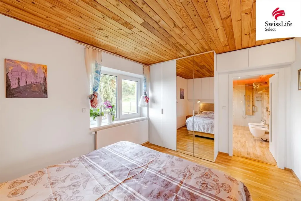 Tento dům nebyl původně určen k prodeji. Paní majitelka každý detail promyslela a vybudovala s láskou od masivního schodiště z jasanu na míru přes elegantní koupelny až po nádherný krov s pohledovými trámy a útulné schovky pro děti.