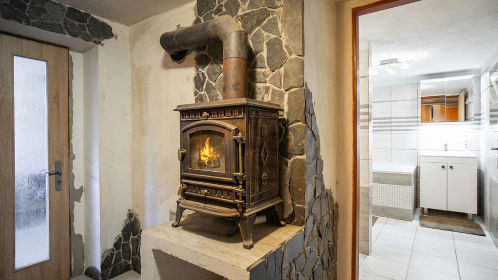 Vytápění je zde zajištěno horkovzduchem krbovým kamny v suterénu a v obývací místnosti, či je možno využít přímotopy.