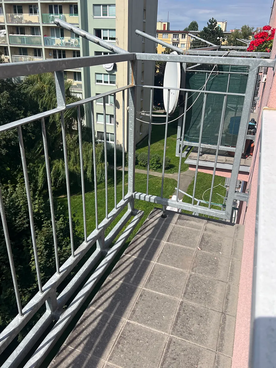Byt se nachází v 5. patře zatepleného domu s plastovými okny. Na každém patře jsou pouze tři byty, což zajišťuje soukromí a klid. Balkón je orientován do tichého vnitrobloku se zelení a u domu jsou parkovací místa.