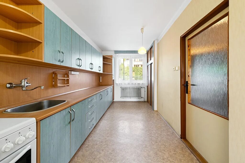 V přízemí najdete praktické 2+1 – kuchyni, obývací pokoj, další pokoj, koupelnu, prostor pro šatní skříně, balkon a garáž – celkem 85,06 m².