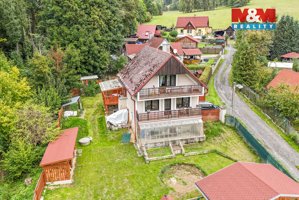 Nabízíme k prodeji rodinný dům v klidné obci Chotěnov, nedaleko Mariánských Lázní. Tento samostatně stojící cihlový dům zaujme svou polohou a dispozicí. V přízemí se nachází pracovna, koupelna, dále prostorný obývací pokoj s krbem a vstupem na balkon, dále pak kuchyně, na kterou navazuje zastřešená terasa. V prvním patře jsou dva pokoje, z toho jeden s balkonem a druhá koupelna. Část domu je podsklepená a je možné využívat úložné prostory na půdě. Z kotelny je vstup na zahradu, na které se nachází skleník, zahradní domek a dřevník. K domu náleží pozemek o rozloze 973 m², ideální pro zahradničení, drobné hospodaření nebo relaxaci. Zdrojem vody je vlastní studna, odpady jsou svedeny do septiku. Tato nabídka je ideální pro ty, kteří hledají klidné bydlení v krásném čistém prostředí s dobrou dostupností do Mariánských Lázní. Neváhejte a domluvte si prohlídku ještě dnes!