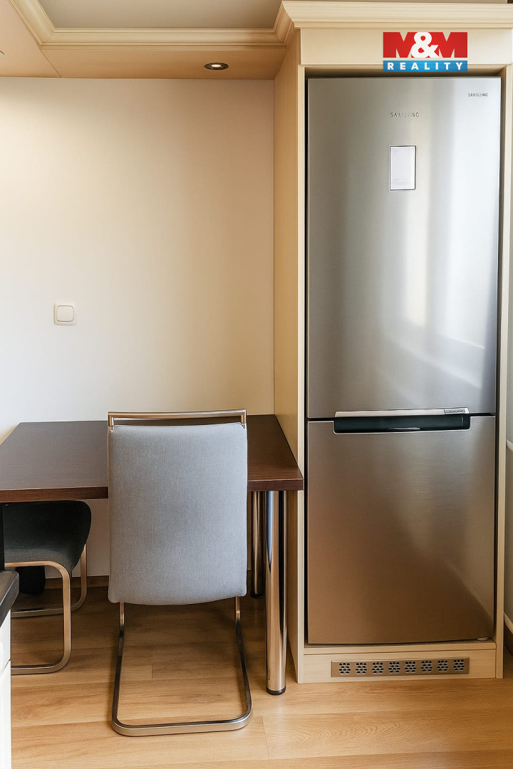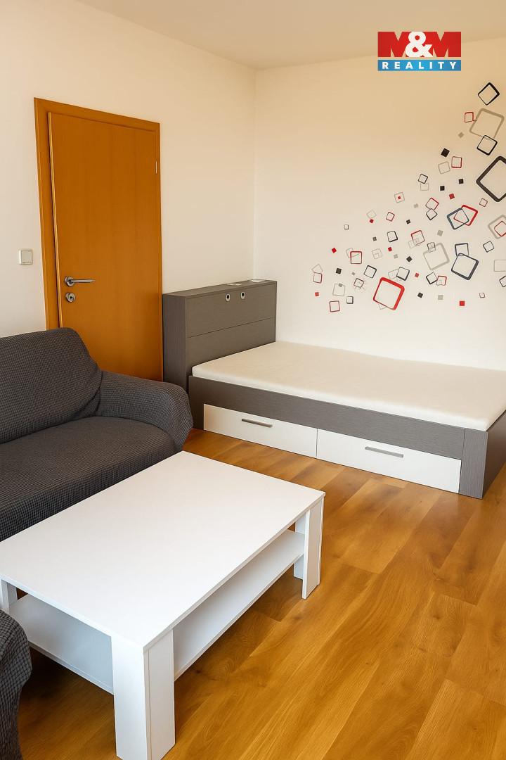 Byt je plně vybavený – k dispozici je kuchyňská linka se sporákem, lednice, pračka, postel, sedačka i úložné skříně. V koupelně se nachází vana, umyvadlo a WC. Byt je světlý, udržovaný a připravený k okamžitému nastěhování.