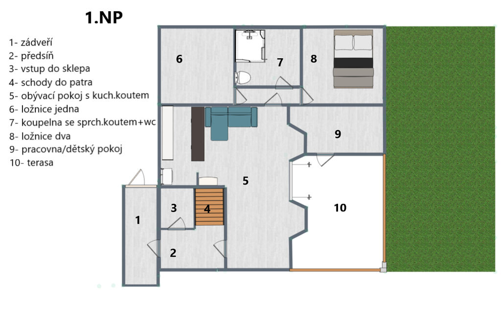 • ložnice s pracovnou a vstupem na terasu