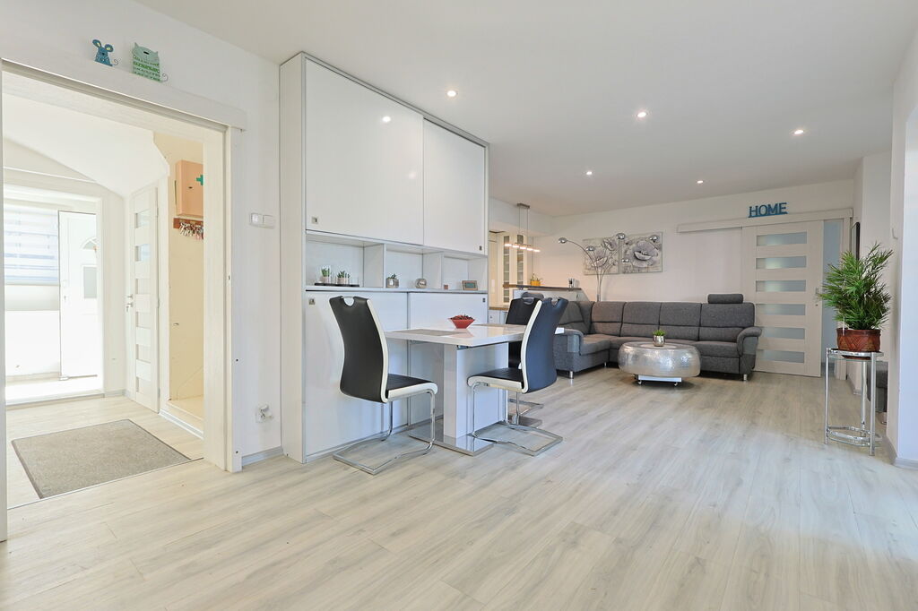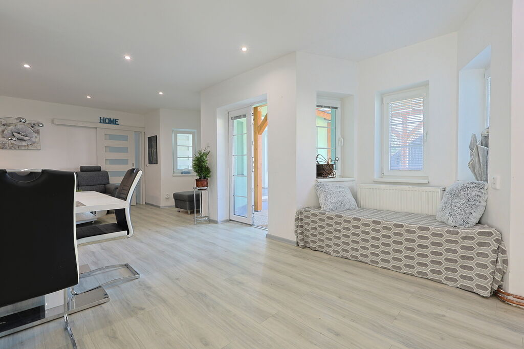 • prostorný obývací pokoj s kuchyňským koutem a přímým vstupem na terasu
