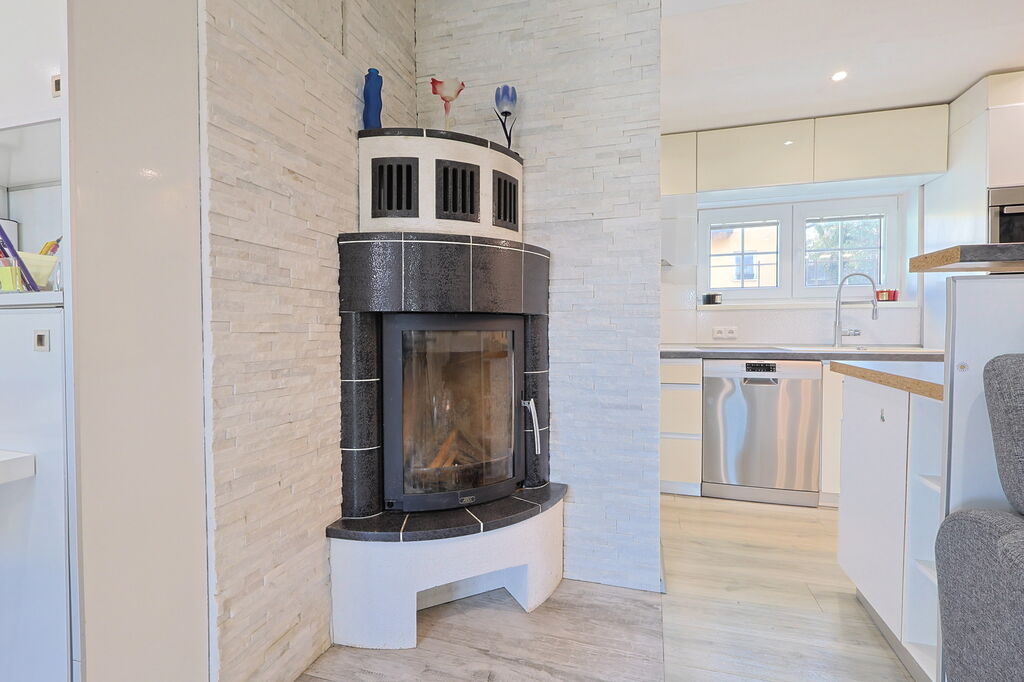 • v 1.NP kachlová kamna bez výměníku (komín je vyvložkovaný)