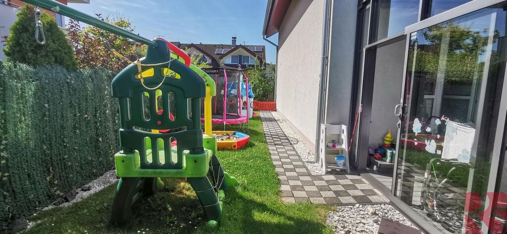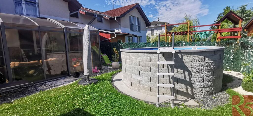 Za domem se nachází velký dřevěný domek a mnoho herních prvků pro děti, což z něj činí skvělé místo pro rodinné aktivity. Dále je zde vybudovaný zděný nadzemní bazén a zimní zahrada, která je ideální pro odpočinek.